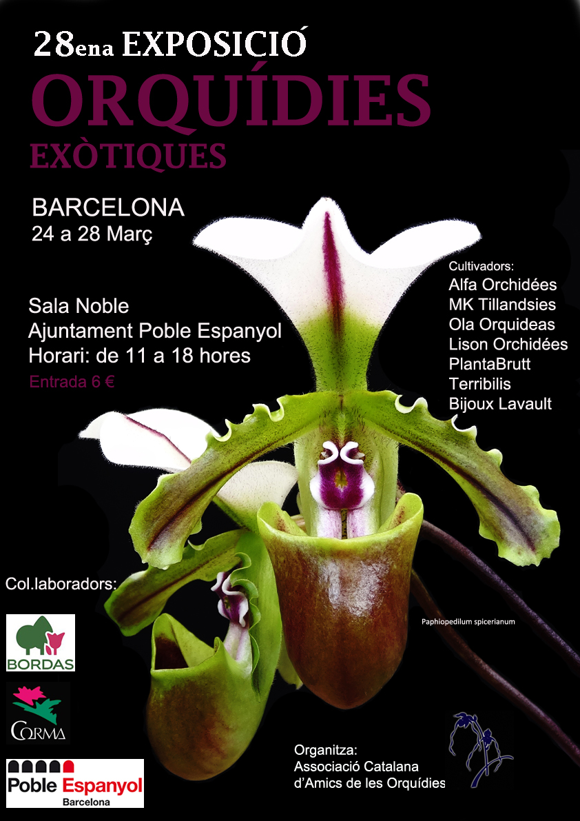L’Associació Catalana d’Amics de les Orquídies amb la col·laboració del Poble Espanyol, de la Jardineria Bordas i el Corma organitza la 28 edició d’aquesta interessant exposició. Venda d’orquídies per cultivadors especialitzats, venda de material especific per al seu cultiu. Inclou conferències i tallers.