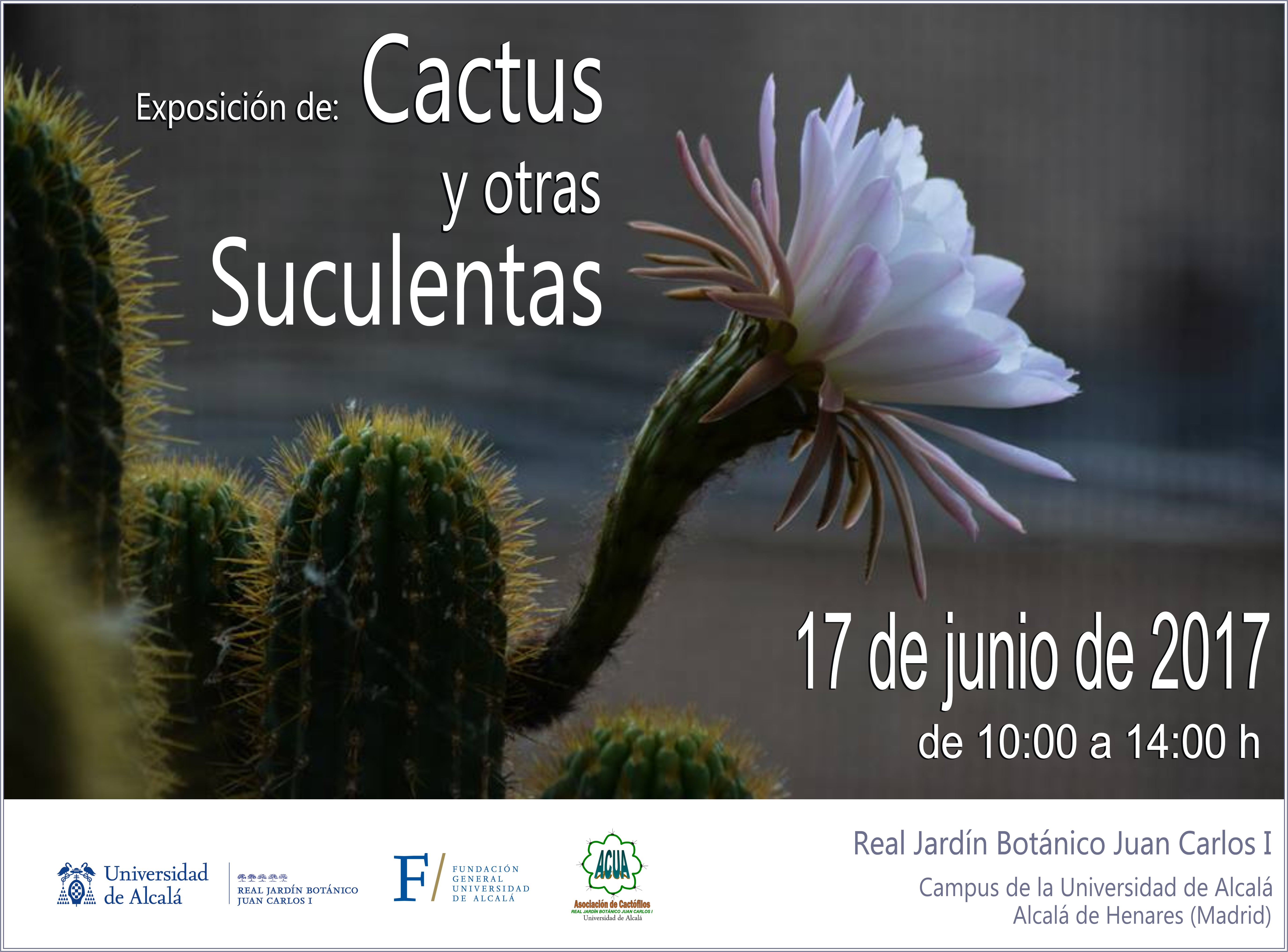 17/6/2017: Expo ACUA a Madrid 23maig 20173 jul. 2017Add a comment El dissabte 17/6/2017 els nostres amics del club de cactus de Madrid ACUA celebren la seva exposición anual. Horari 10:00 – 14:00, al Real Jardín Botánico Juan Carlos I, del campus de la Universidad de Alcalá de Henares. Tots benvinguts! Comparteix això: Email a link to a friend (S'obre en una nova finestra) Correu electrònic Imprimeix (S'obre en una nova finestra) Imprimeix M'agrada S'està carregant... Relacionats